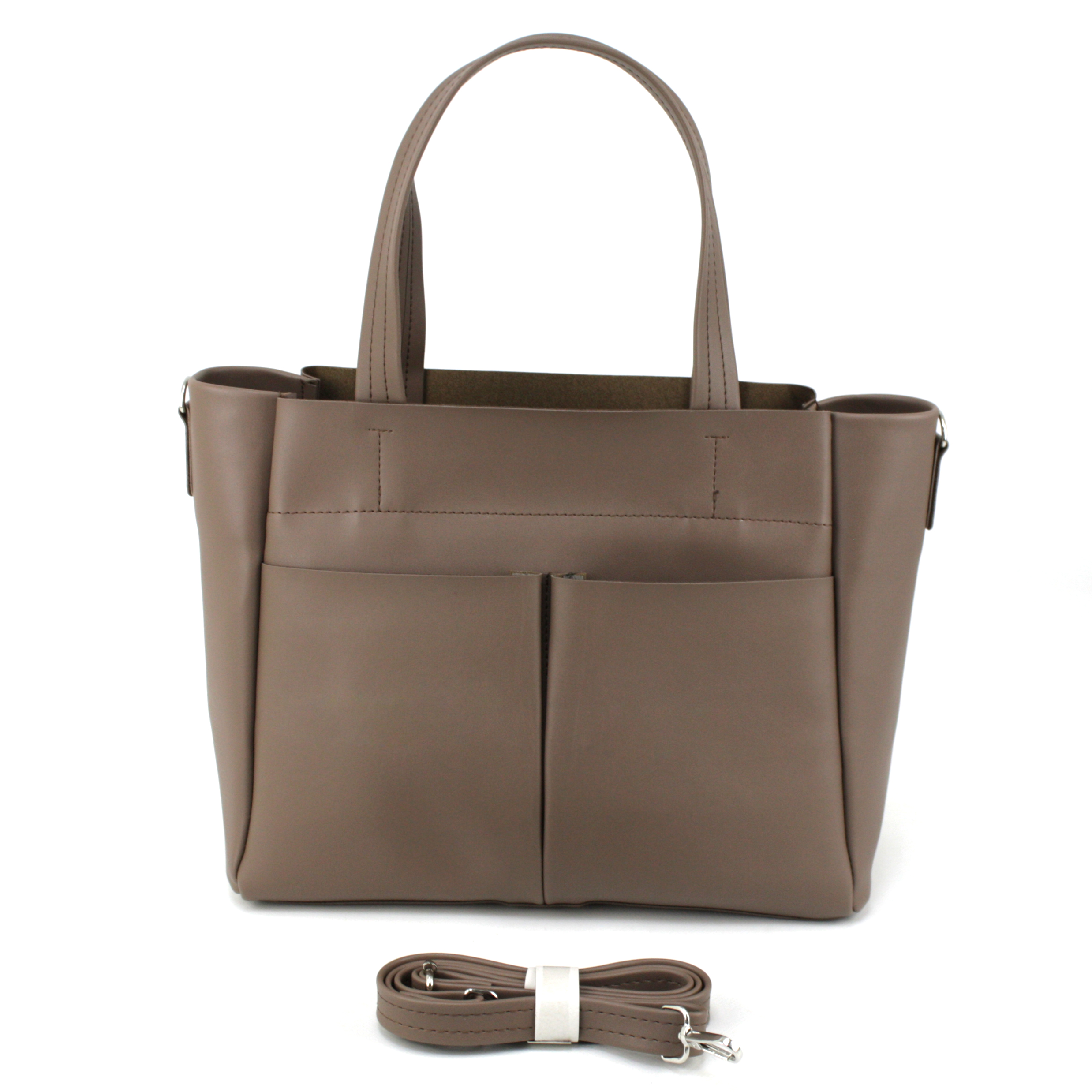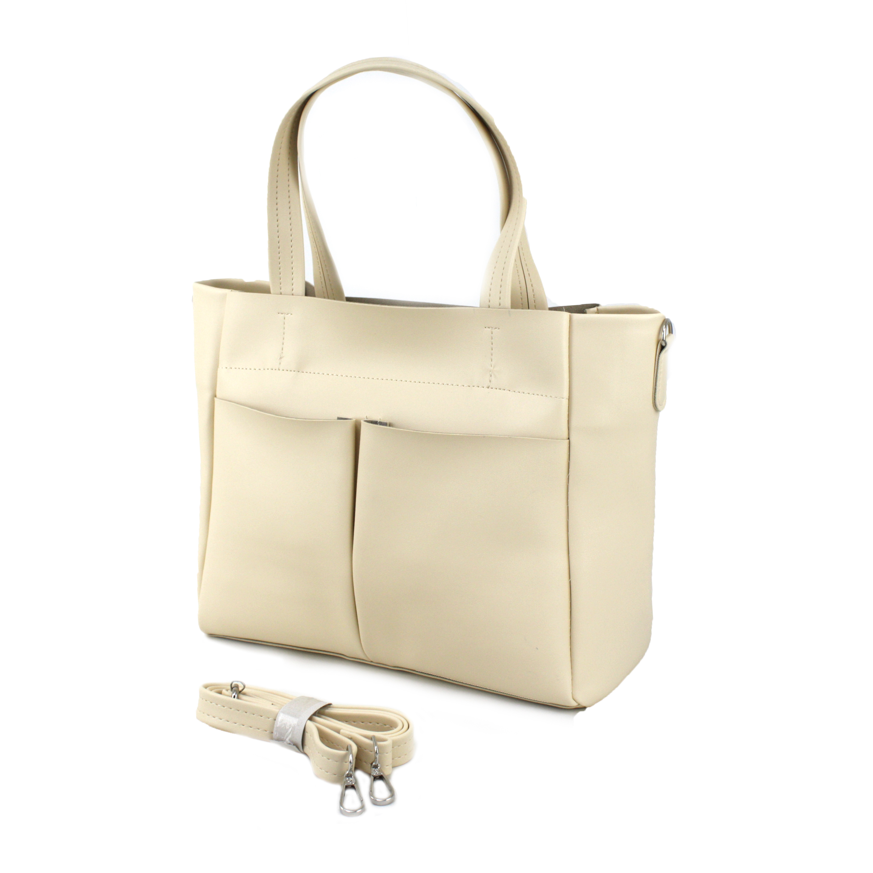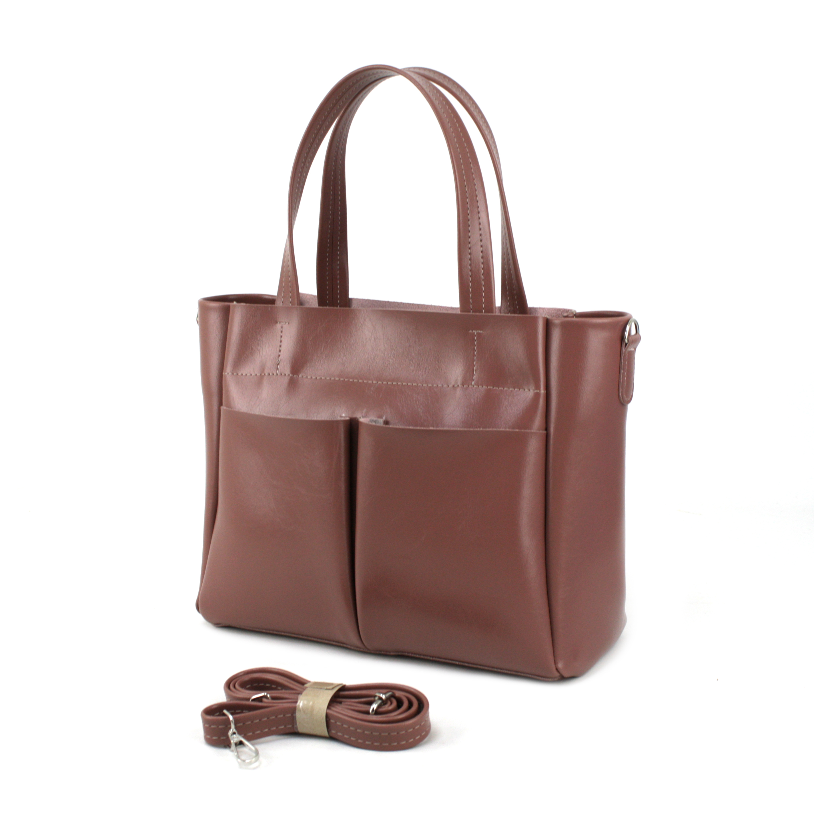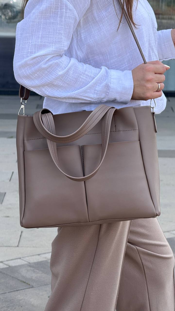 -На зовнішній стороні сумки як для краси так і для зручності є дві великі накладні кишені відкритого типу.