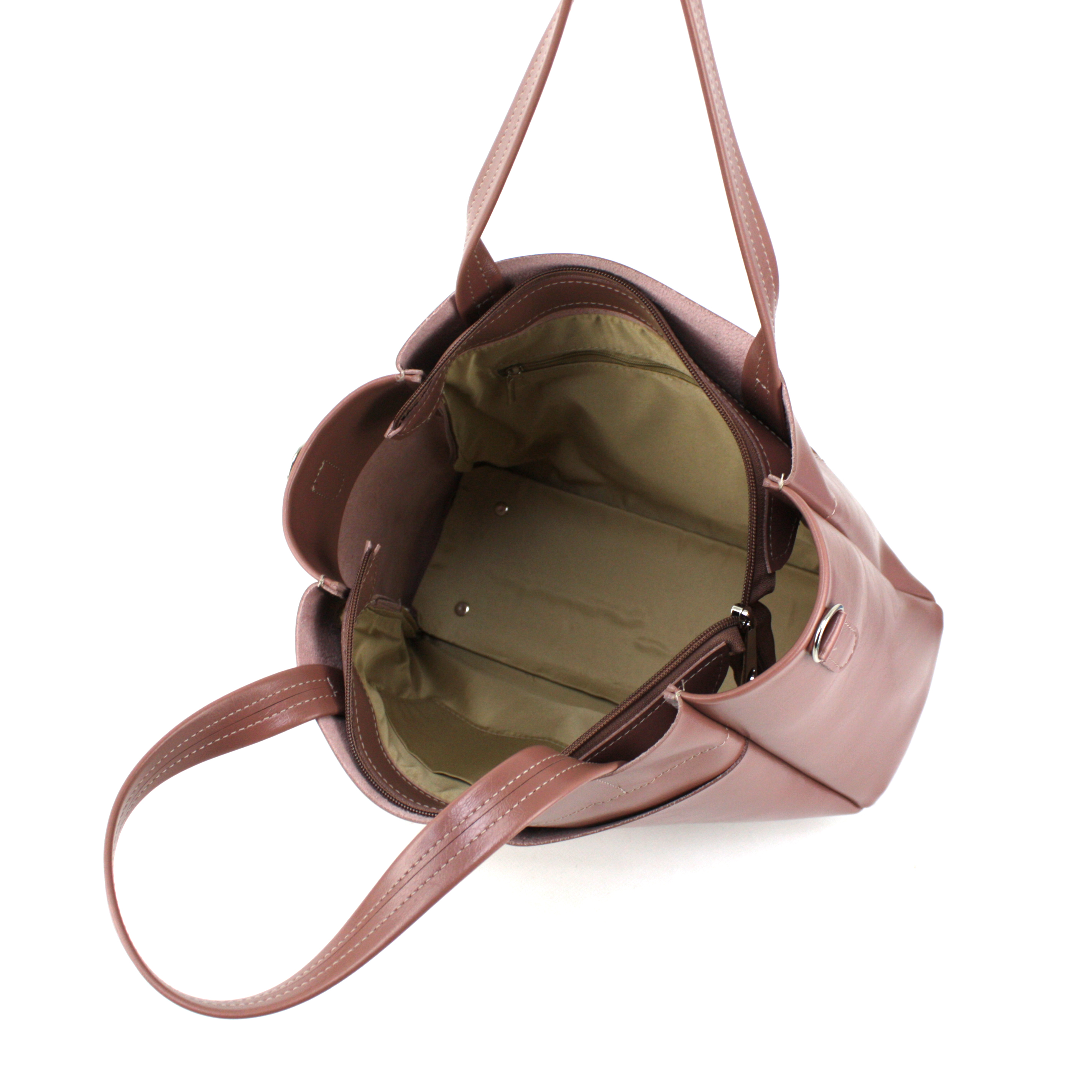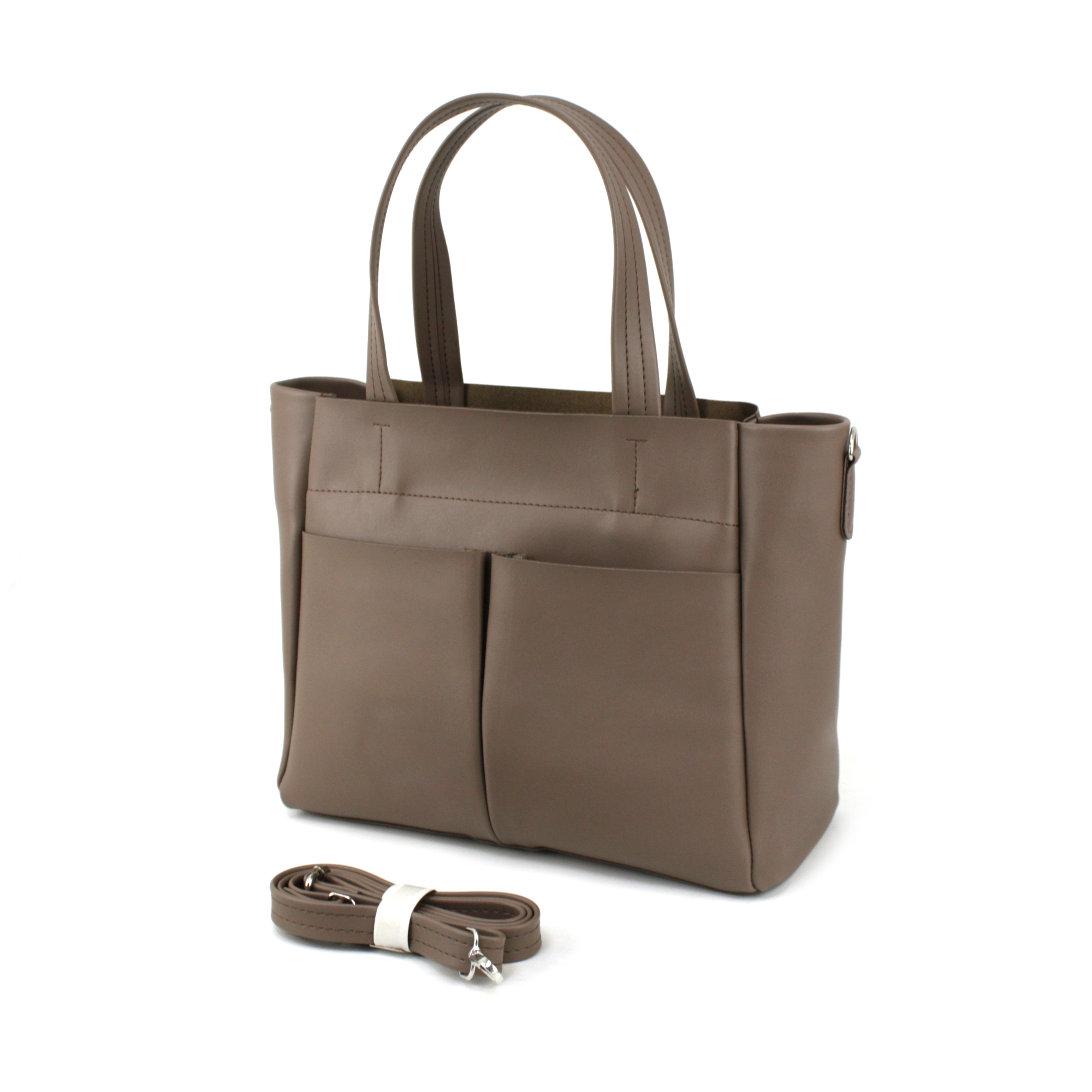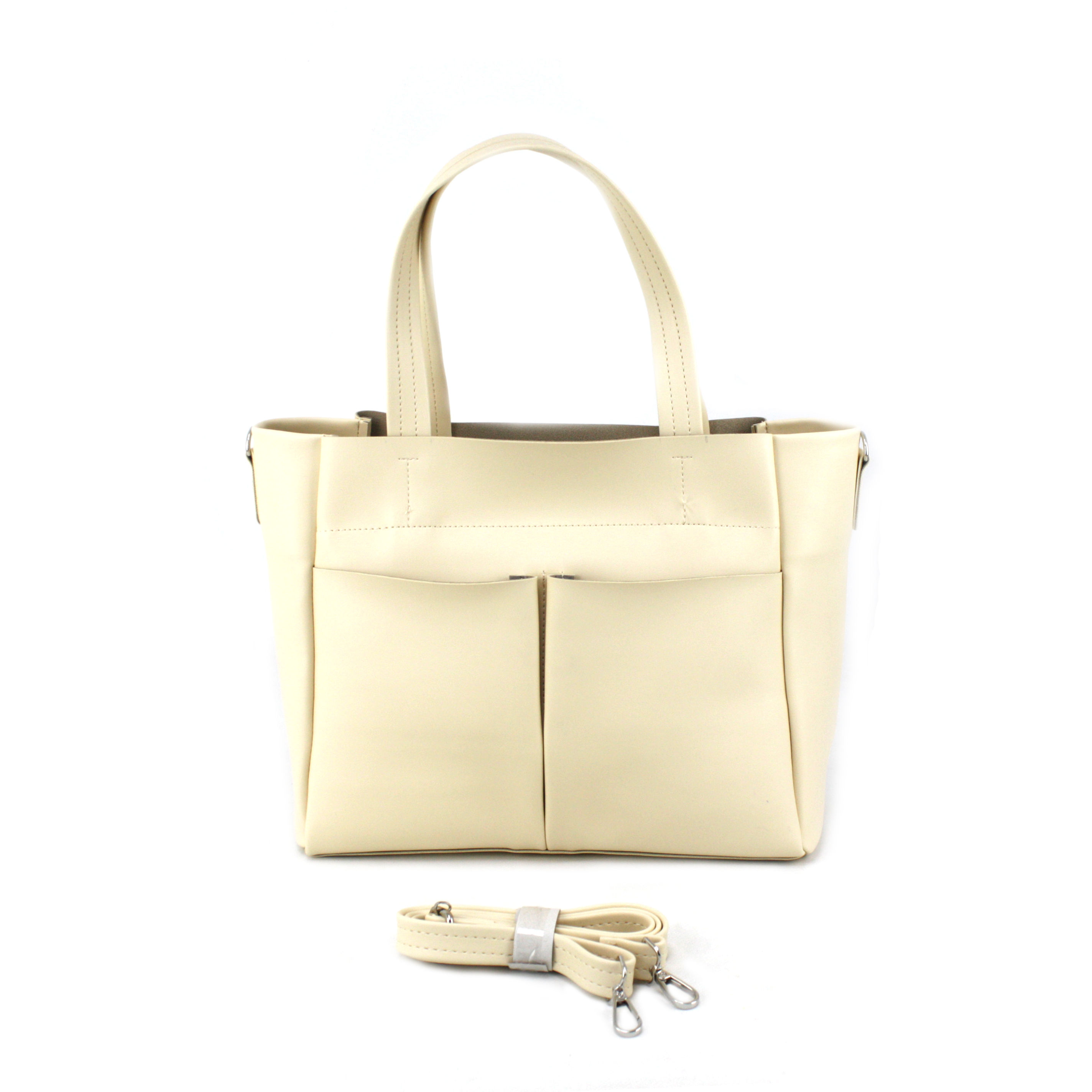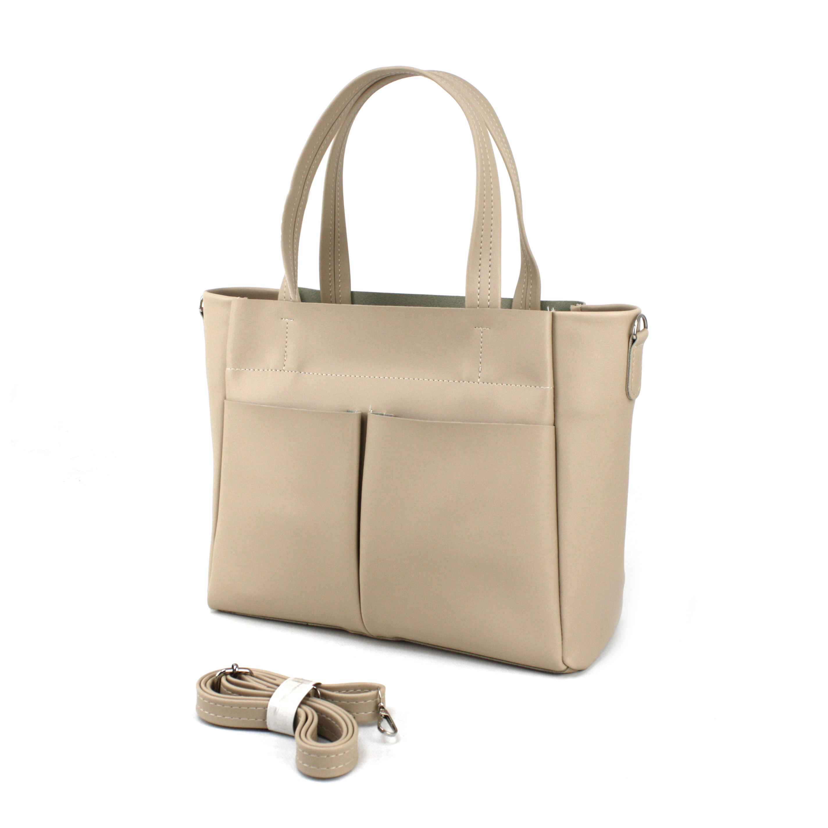 -На зовнішній стороні сумки як для краси так і для зручності є дві великі накладні кишені відкритого типу.
